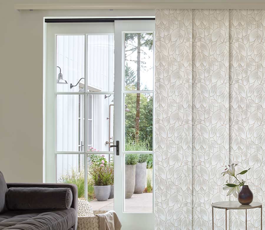 The wide slats of panel track blinds make access to your outdoor space a cinch, operating similar to vertical blinds, but with contemporary design in mind. They glide smoothly, stack in a low profile form, and stay put for adjustments. Simplistic and smooth, convenience and function go hand-in-hand. Available in a range of beautiful materials, panel track blinds create a stunning look on the doors and large windows of your Reno area home. These vertical blinds pair nicely with our Designer Roller Shades collection when outfitting spaces that have both windows and doors to coordinate.