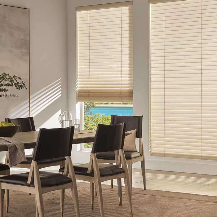 Timeless style, lasting benefits. Window blinds are a classic way to elevate any room while providing solutions like light control and privacy. At Blue Sky Shutters & Shades we have four stunning Hunter Douglas window blinds collections. Find the perfect fit for your home with real and faux wood, aluminum, and fabric blinds.